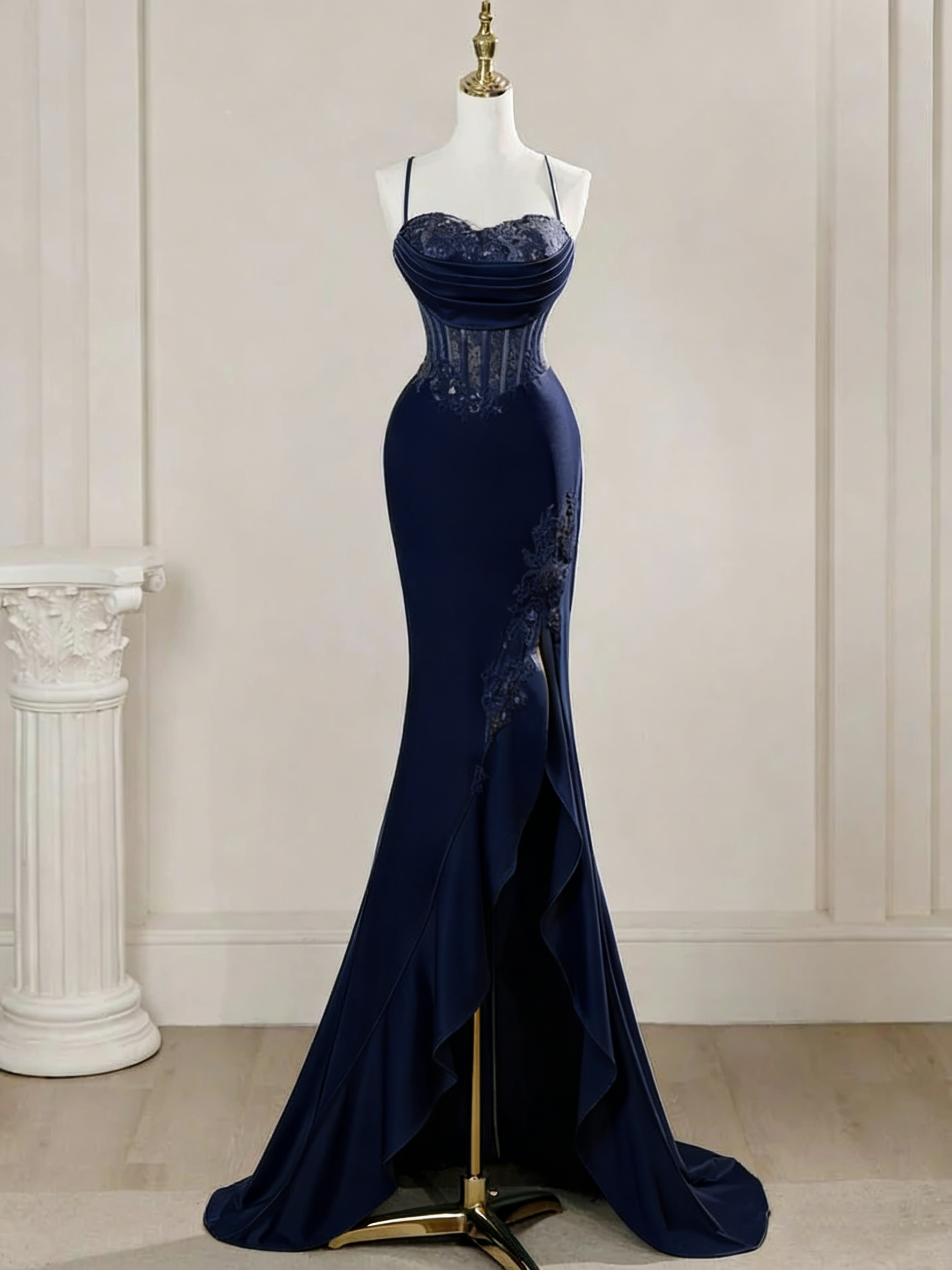 - Neckline:Spaghetti Straps